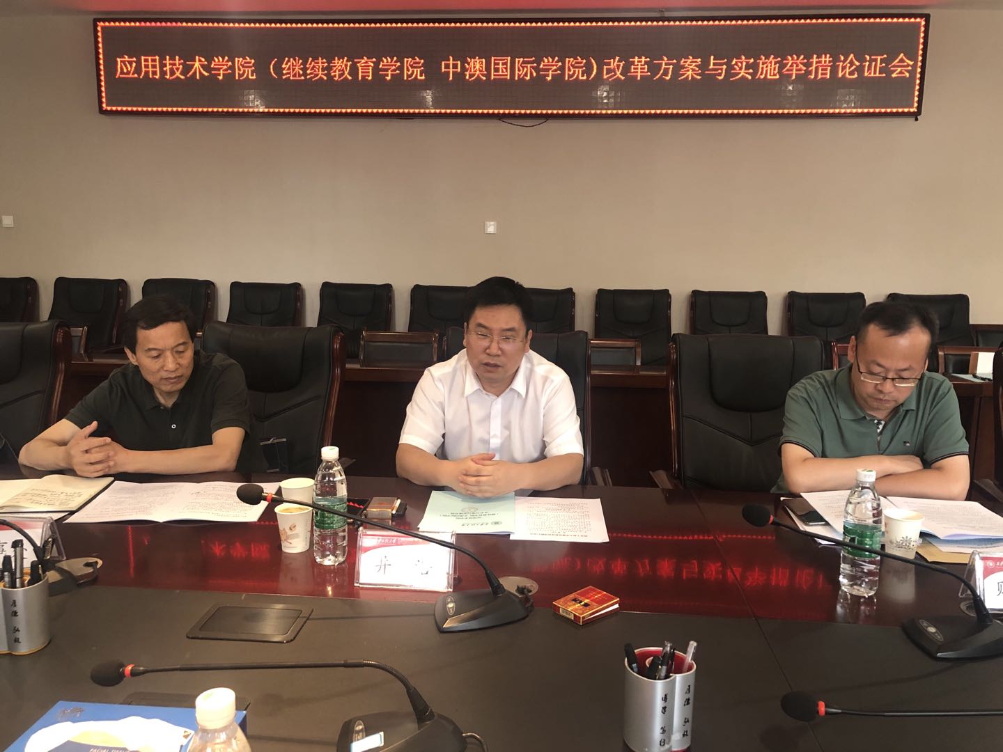 2020年7月15日下午,我校在金花校区第三会议室召开“新葡萄8883官网amg官网(继续教育学院 中澳国际学院)改革方案与实施举措论证会”,会议邀请了陕西省高等继续教育学会秘书长赵文科、西安电子科技大学原网络与继续教育学院院长丁振国,陕西师范大学远程教育学院院长薛东前和西安石油大学原继续教育学院院长郭岗彦四位专家教授进行论证。校党委副书记、纪委书记井浩、组织部、人事处、财务处、发展规划处以及新葡萄8883官网amg官网等相关部门负责人参加了本次论证会,会议由井浩主持。