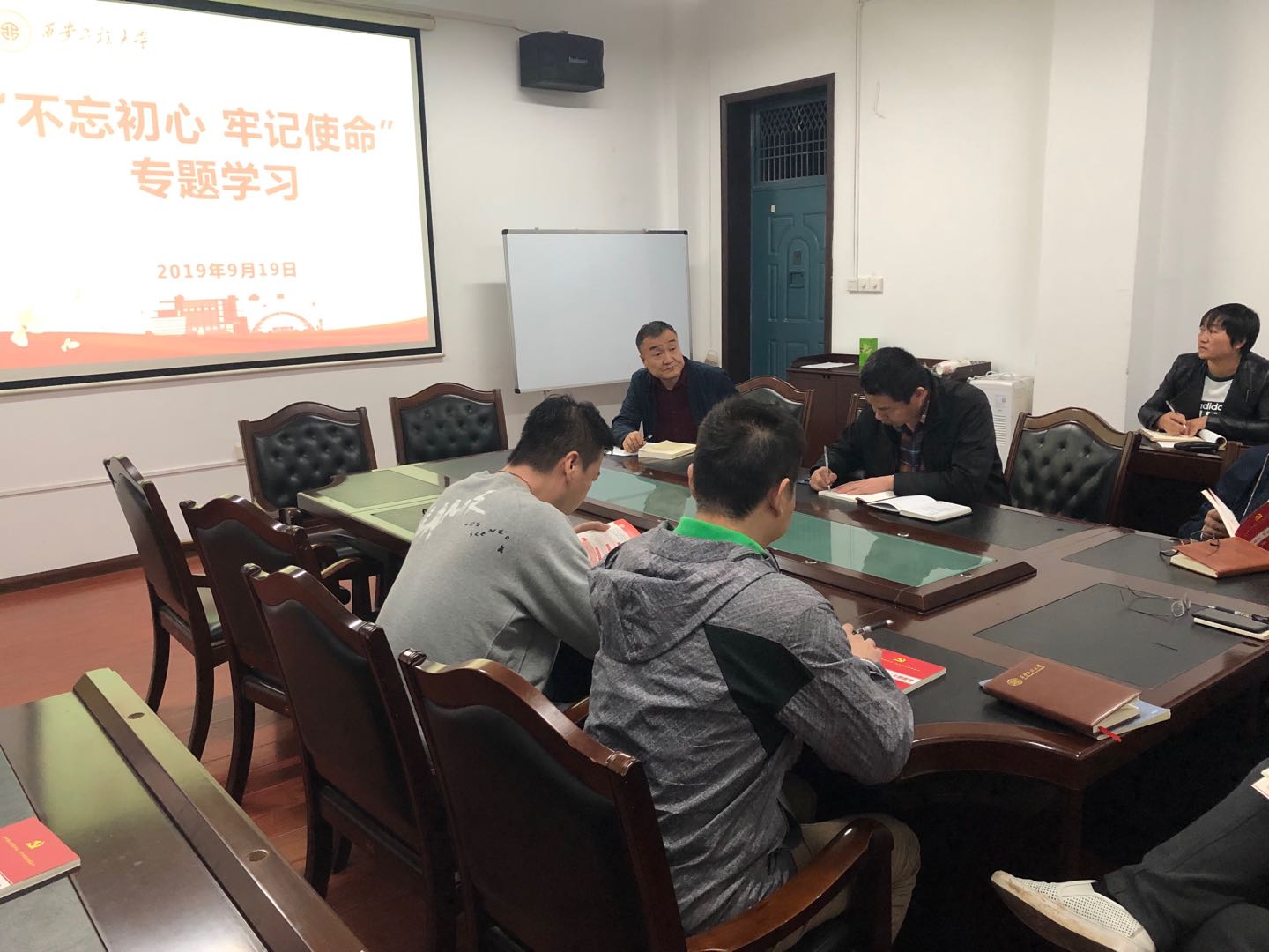 2019年9月19日,新葡萄8883官网amg官网党总支在金花校区学院会议室开展了“不忘初心、牢记使命”专题学习活动,活动由学院党总支书记王宇主持,学院全体教职工参加了学习。