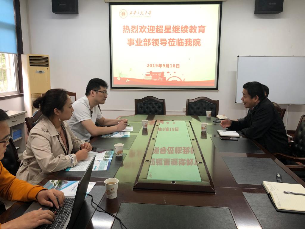 2019年9月18日下午,北京超星公司继续教育事业部副总经理马文华一行三人来新葡萄官网商谈继续教育合作相关事宜。双方的合作交流座谈在学院会议室召开,学院副院长刘玉森、学院培训部、成人招生负责人等参加了此次座谈,座谈由刘玉森主持。