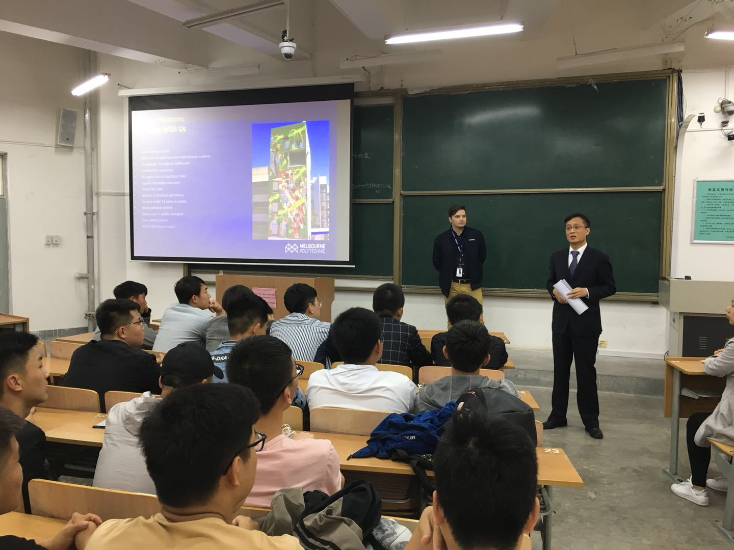 Damian Stawiszynski表示新葡萄8883官网amg官网作为该校的重要合作伙伴,有着坚实的合作基础,期待双方有更多的交流合作。他随后详细介绍了墨尔本理工学院的短期研学项目、短期交换生项目等国际交流项目以及“专-本-硕”项目对我校学生的学费减免政策等。