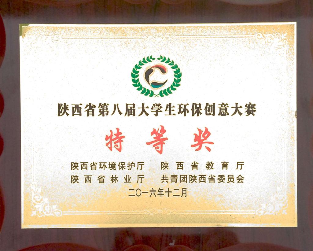 2016年11月18至20日,由陕西省环保厅、陕西省教育厅、陕西省林业厅和共青团陕西省委联合主办,由陕西省创意文化产业协会和西安梦蝶数字科技有限公司联合承办的陕西省第八届大学生环保创意大赛作品展览在曲江会展中心举办。12月2日,评审会在西安理工大学(曲江校区)举行。本届大赛共收到参赛作品5319件,分别来自全省60多所高校。共邀专家评委17位,由政府领导、行业专家和校内专家组成。著名电影编剧芦苇担任评委会主席;陕西省作协副主席莫伸担任评委会副主席。大赛共评出特等奖、一等奖、二等奖、三等奖和优秀作品151件。同时评学出最佳组织奖3个,优秀组织奖10个,优秀志愿者20名,优秀指导教师6名。